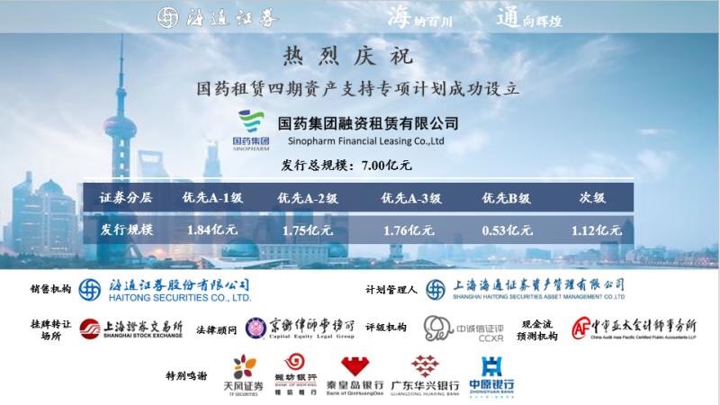 熱烈祝賀國(guó)藥租賃四期資產(chǎn)支持專項(xiàng)計(jì)劃成功發(fā)行