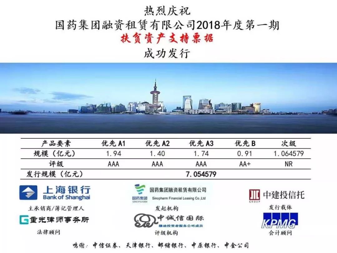 熱烈祝賀國(guó)藥集團(tuán)融資租賃有限公司2018年度第一期扶貧資產(chǎn)支持票據(jù)成功發(fā)行