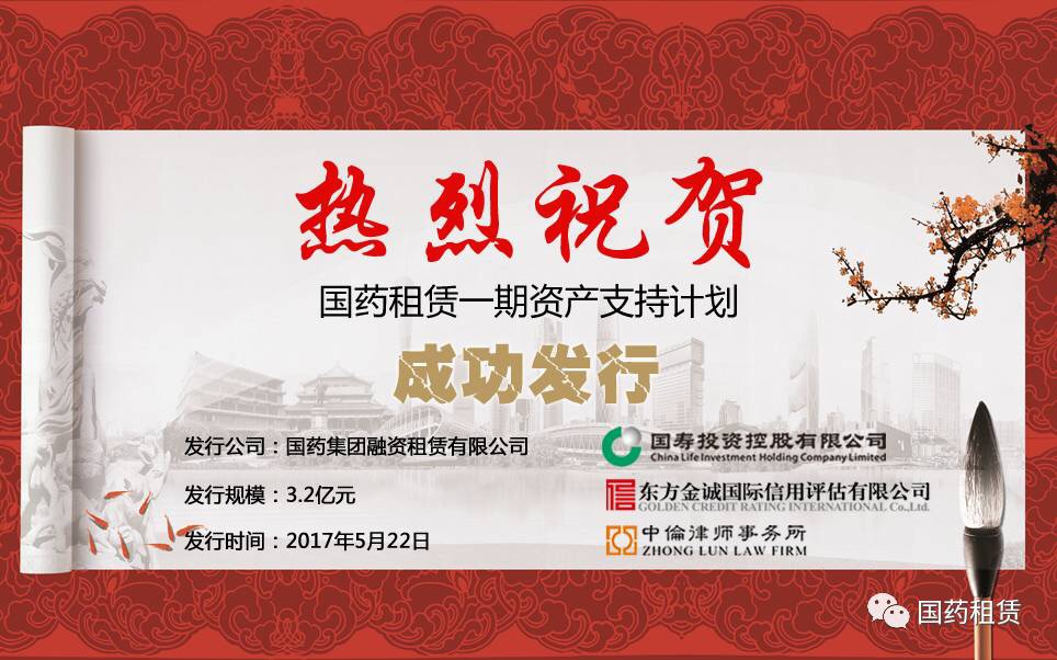 熱烈祝賀國(guó)藥租賃(交易所)資產(chǎn)支持專項(xiàng)計(jì)劃成功發(fā)行