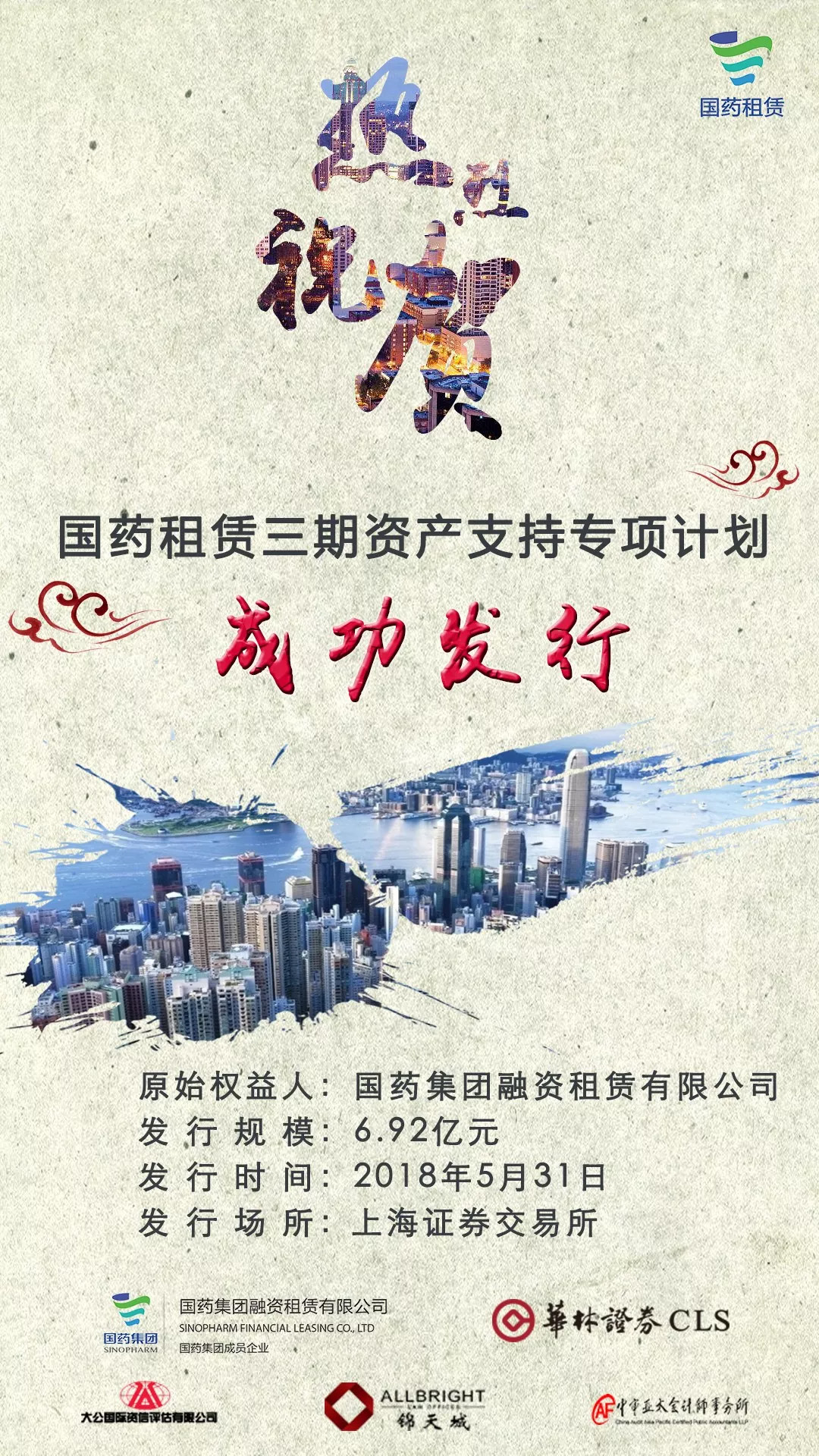 熱烈祝賀國藥租賃三期資產支持專項計劃成功發(fā)行