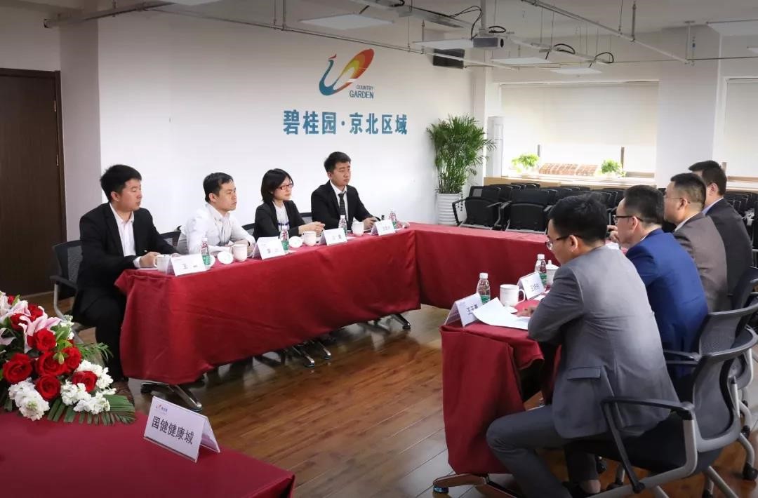2018年5月9日上午,京北區(qū)域執(zhí)行副總裁劉震攜京北區(qū)域投拓及財務(wù)團(tuán)隊(duì)在京北區(qū)域會議室會見了前來考察的國健健康城的管理層團(tuán)隊(duì),在財務(wù)總監(jiān)李杰總的薦引下進(jìn)行了愉快和深入的交談。