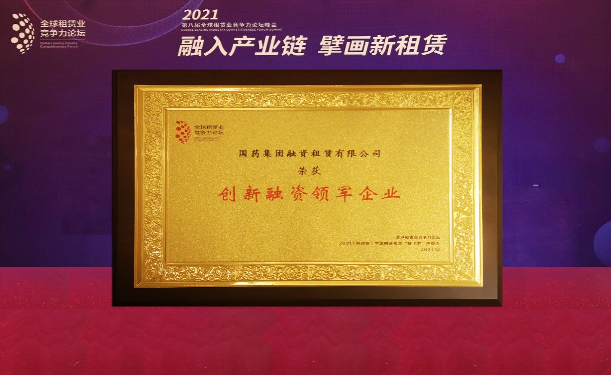 12月22日至23日,主題為“融入產(chǎn)業(yè)鏈,擘畫新租賃”的2021(第八屆)全球租賃業(yè)競(jìng)爭力論壇峰會(huì)在天津舉辦。國藥集團(tuán)融資租賃有限公司在峰會(huì)舉辦的2021(第八屆)中國融資租賃“騰飛獎(jiǎng)”評(píng)選中,憑借在融資創(chuàng)新領(lǐng)域取得的成績,榮獲“創(chuàng)新融資領(lǐng)軍企業(yè)”稱號(hào)。