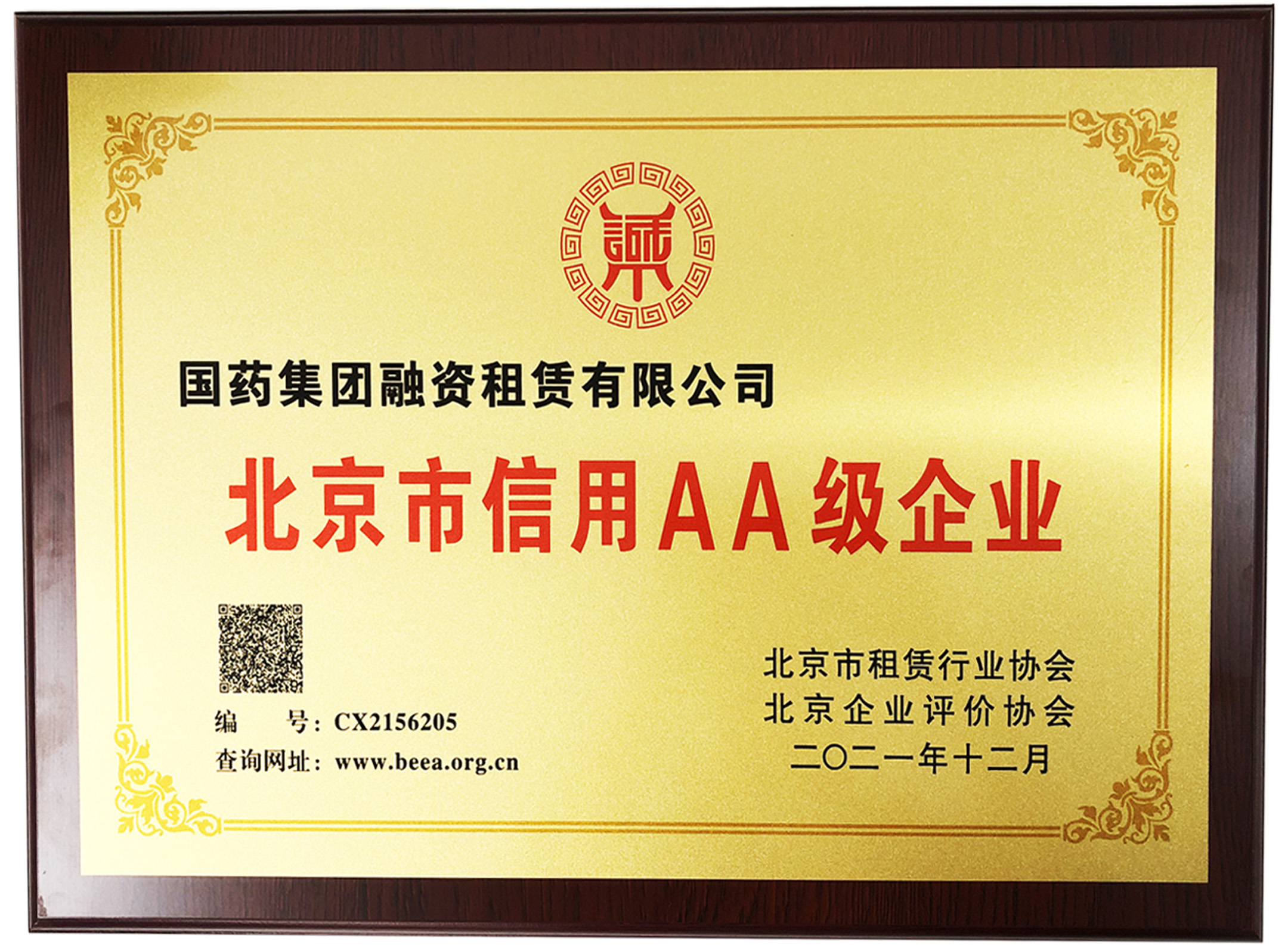 近期,國(guó)藥集團(tuán)融資租賃有限公司(以下簡(jiǎn)稱“國(guó)藥租賃”)再次榮獲北京市租賃行業(yè)協(xié)會(huì)、北京企業(yè)評(píng)價(jià)協(xié)會(huì)“北京市信用AA級(jí)企業(yè)”及中關(guān)村科技園區(qū)管理委員會(huì)“中關(guān)村高新技術(shù)企業(yè)”的認(rèn)定。
