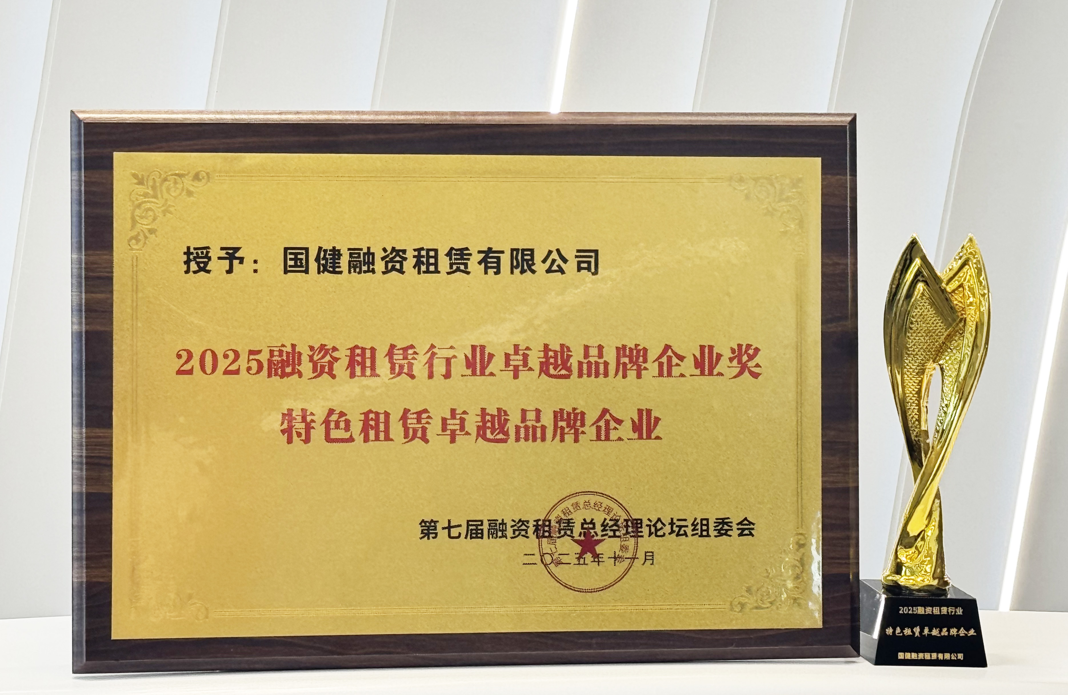 國(guó)健租賃榮獲第七屆融資租賃總經(jīng)理論壇“2025融資租賃行業(yè)卓越品牌企業(yè)獎(jiǎng)”