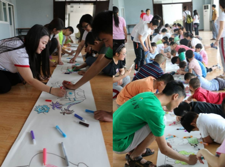 在與孩子們共同完成的“百米畫卷”活動中,隨著公司愛心人士精心繪制的卡通簡筆畫卷徐徐展開,現(xiàn)場歡呼聲一片。孩子們在老師和志愿者們的引導(dǎo)下,和他們一起拿起手中的彩筆,尋找到喜歡的形象后飛快地涂抹上色,專注極了。起初,有些孩子還帶點怯懦,慢慢地,在志愿者的鼓勵和帶動下也嘗試了起來,畫得越來越投入,和身邊的志愿者們不再陌生,展開了天真的笑臉,有的孩子不但作了自我介紹還在畫卷上寫下了名字,還有的孩子作畫意愿被極大地激發(fā),甚至主動要求多次換筆調(diào)色。就這樣,黑白卷軸在小小畫筆的共同點綴下,一點點變得多彩和豐滿,就像是載滿了星星孩子們彩色的夢!活動最后,每位志愿者還為孩子們送上了一份精心準(zhǔn)備的 畫筆和圖冊。