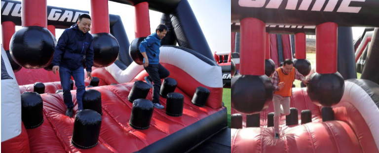翌日上午,我們引進(jìn)了創(chuàng)意無(wú)限的HIGH GAME城市障礙賽,大型主題氣墊關(guān)卡徹底顛覆無(wú)趣印象的極酷玩法,全方面挑戰(zhàn)我們的新鮮感與個(gè)人運(yùn)動(dòng)極限。面對(duì)這些巨型的沖關(guān)氣模,我們經(jīng)受住了苛刻的極限考驗(yàn),全體隊(duì)員都努力克服重重關(guān)卡,順利到達(dá)終點(diǎn)。