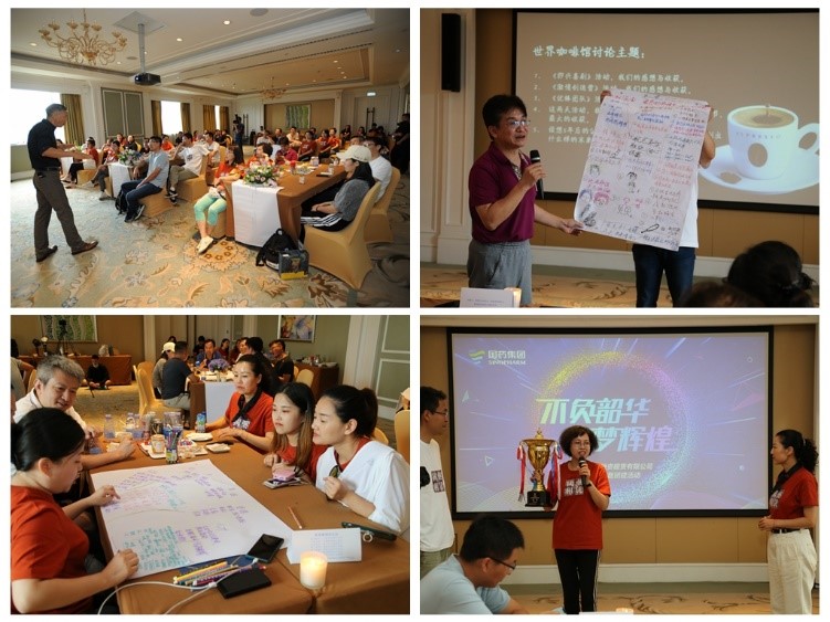 最后的復盤,我們引進了世界咖啡-創(chuàng)造集體智慧的溝通分享方法,設置五個不同話題的咖啡館,除館主以外的其他人員自發(fā)選擇,參與每個話題的討論。大家彼此間充分交流思想、表達觀點,最終用集體的智慧凝練出兩天的收獲與心得,并一同展望國藥租賃五年后的輝煌未來。